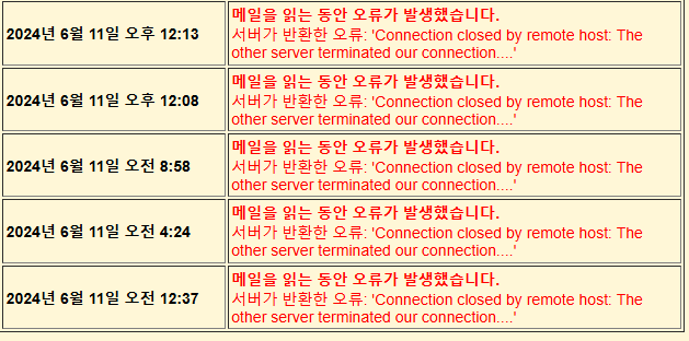 회사에서 받는 메일을 지메일로 연동해서 실시간으로 열람을 하고있었는데 갑자기 아래와 같은 내용이 뜨면서 작동이 안됩니다.