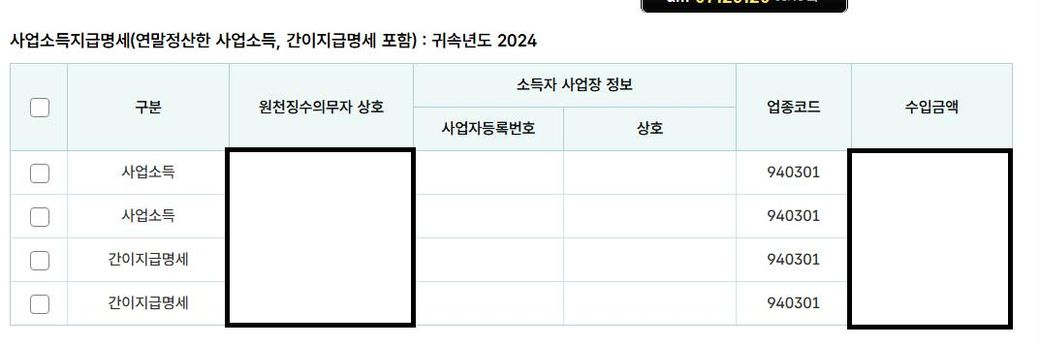 사업소득만 체크하면 되는 것인지, 아니면 간이명세서 항목 포함해서 둘 다 체크해야 하는 것인지 궁금합니다.