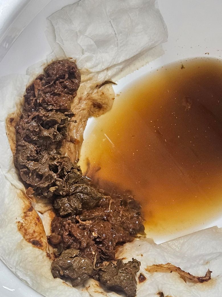 제변의 상태에 대해 회색변이라는건지 카키색이 맞는건지