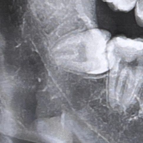사랑니가 기울어져 나 있어. 난이도가 높은 발치로 보입니다. 하지만 나이가 어리고 뿌리가 모아져 있기 때문에 나오는데 크게 문제가 되진 않을 것으로 생각됩니다. 자세한 확인을 위해서 치과에서 진료를 받아 오는 것을 권유드립니다.
