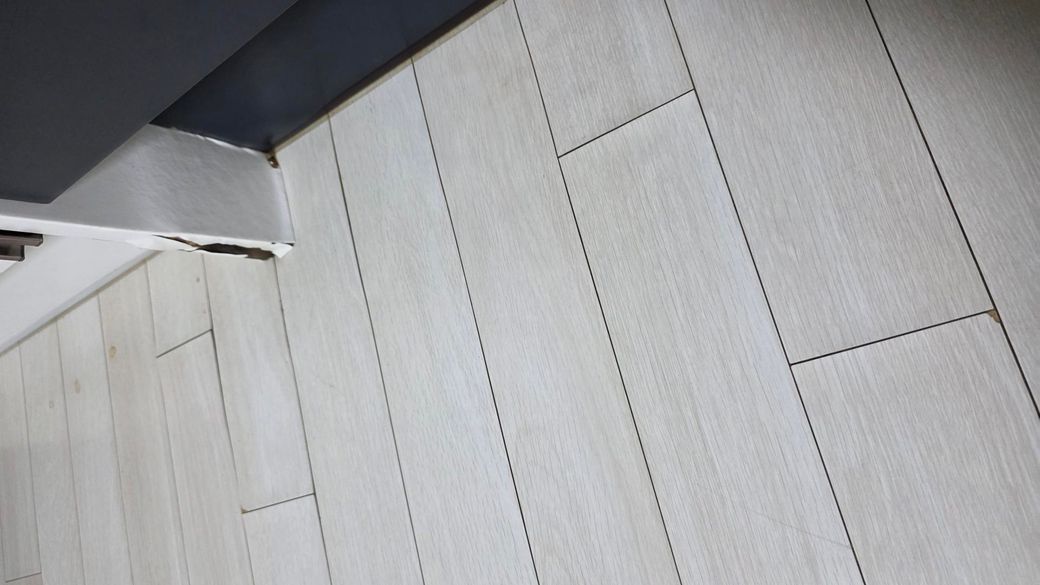사진을 보면 장판이 일부분 들뜨고 갈라지는 현상이 보입니다. 바닥 전문 시공업체 또는 수도와 배관 점검이 가능한 설비/수도 업체와 연락하세요. 그리고 집주인에게 바로 알려 공동확인 후 책임 소재를 명확히 하세요. 전세집 기준, 누수나 하자 우너인이 집 구조, 설비 결함이면 집주인 부담, 세입자 과실이면 세입자 부담입니다.