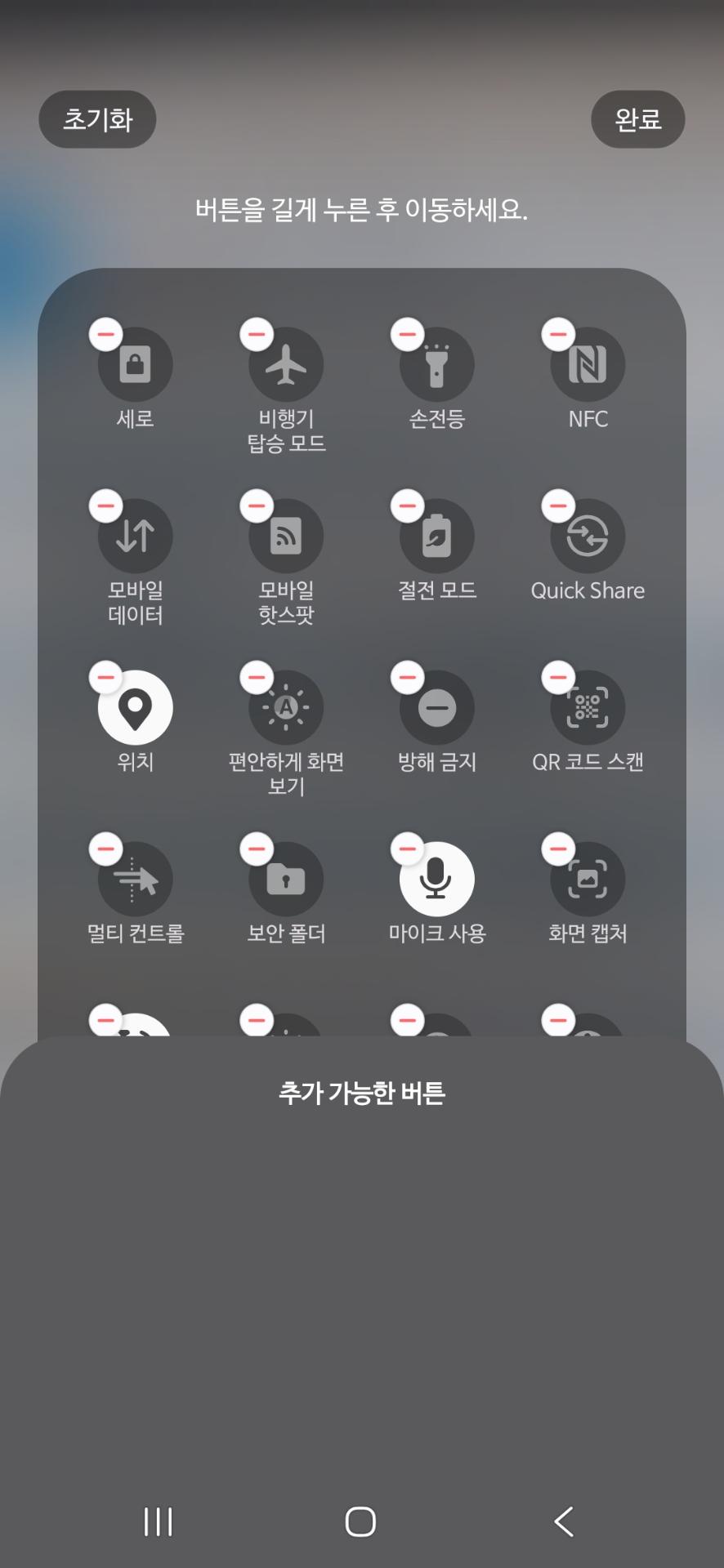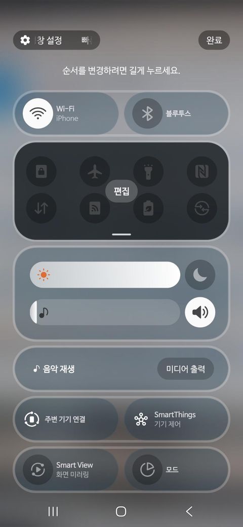 2개의 사진처럼 홈 화면에서 위로 밑으로 내려서 설정에 편집을 눌으고 추가 가능한 버튼 기능들을 더 많이 추가하고싶어요 어떻게 하면되나요 자세히 알려주시면 감사하겠습니다