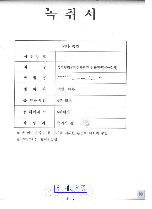 녹취서를 증거로 낸 것으로 보이는데 녹취서를 만들고 증거로 낸 것만으로는 명예훼손에 해당한다고 보기는 어렵고, 경찰에게 얘기한 것만으로 공연성이 있다고 보기도 어려울 것 같습니다.