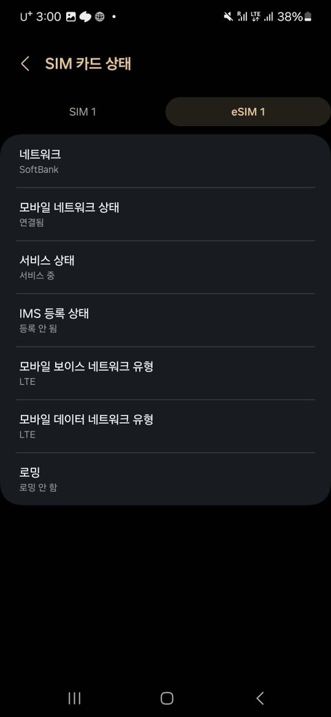 이심 설정을 따라한다고 했는데 뭔가 이상해요. KDDI 랑 softbank 둘다 활성화 되어있습니다. 그리고 캡쳐한 내용이 저는 이해가 안됩니다. 해석 가능하신 분 계실까요?