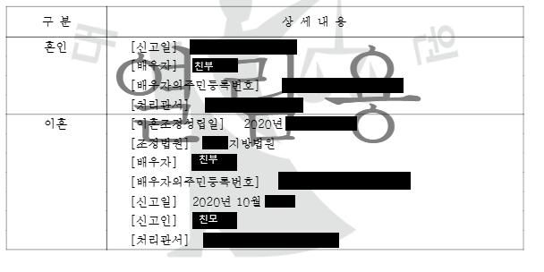 오늘 어머니 혼인관계증명서 때니까 새아버지랑 혼인한게 안뜨네요;; 혼인은 늦어도 23년도 전에는 했을꺼니까 행정상 지연때문은 아닌거같고 이거 혼인 안한거죠? 이혼했어도 혼인 뜨고, 이혼란에 이혼 하나 더 생기는거로 알고있는데...