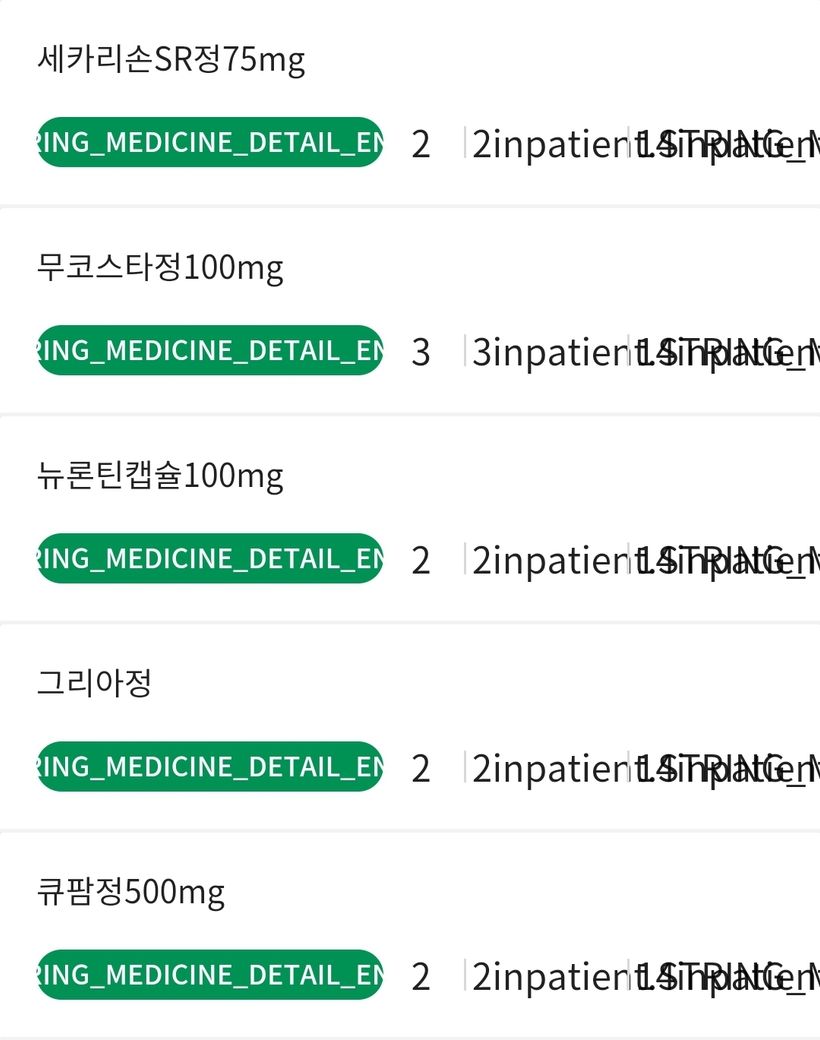 세라리손sr정, 무코스타정, 뉴론틴캡슐, 그리아정, 큐팜정