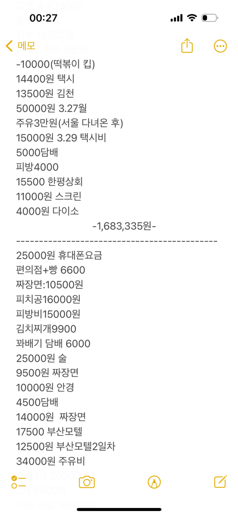 중요한건 이 금액을 계좌이체도 아니고, 현금으로 준것도 아니고 제 카드로 생활비를 내주며 제가 따로 메모장에 장부를 써놓은게 다입니다.