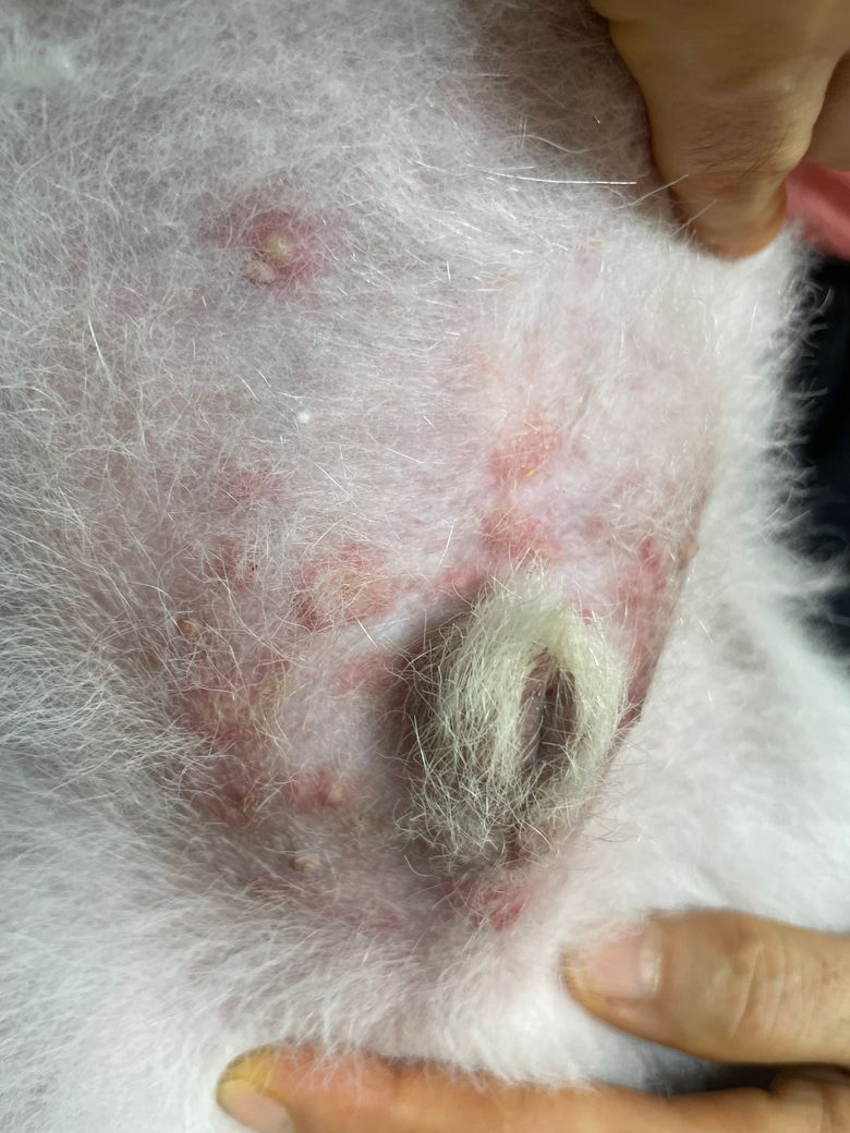 강아지가 잠시 아파트에 있었어야해서 기저귀를 채웠었는데 이렇게 곪아서 주변이 빨개요.. 빨간약이랑 마데카솔 가루로 치료해봐도 진전이 없네요 병원에 가봐야할까요?