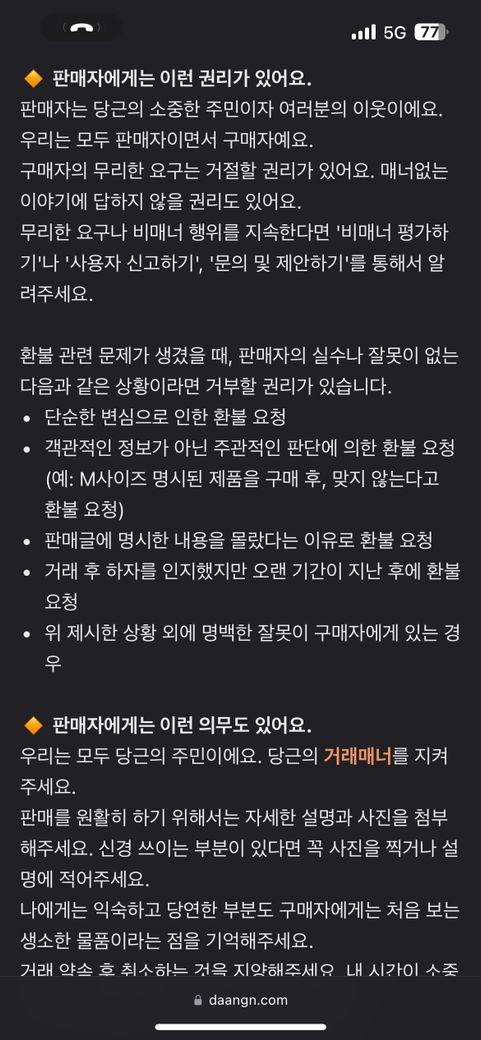 한 달 전쯤 반팔을 직거래로 판매했습니다. 그런데 오늘 갑자기 사이즈가 안맞는다며 환불을 해달라고 연락이 왔는데, 제가 알기로는 중고거래에서 단슨변심으로 인한 횐불을 거부할 권리가 있다고 아는데, 지꾸 안해주면 힘들어질거다 이런식으로 협박을 합니다. 명확한 답변