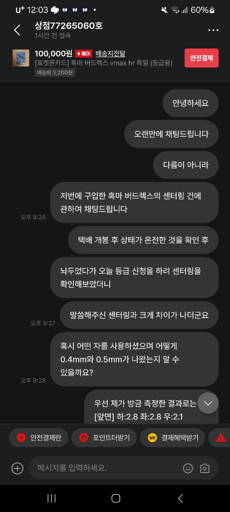 로 측정해서 판매글을 올릴 때는 어떻게 센터링이 매우 좋다고 올렸는가 분명 mm가 있는 자라면 확연히 차이가 보일텐데,허위 매물이 아닌가요?"라고 여쭈었습니다