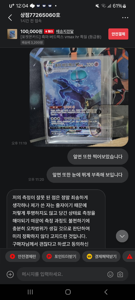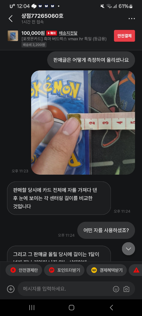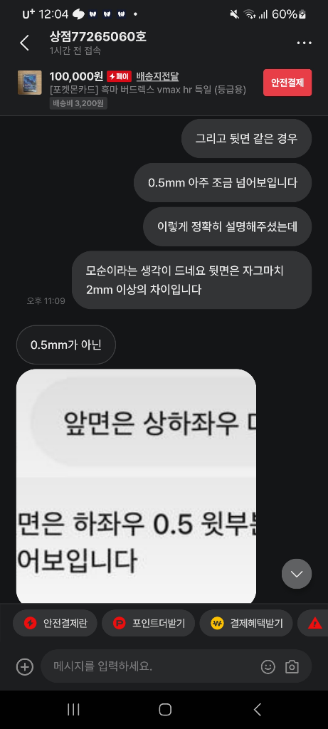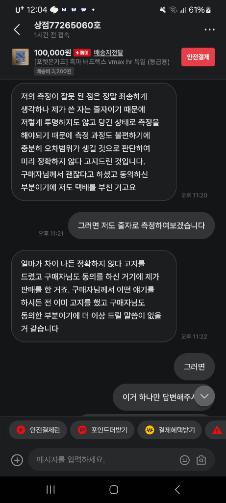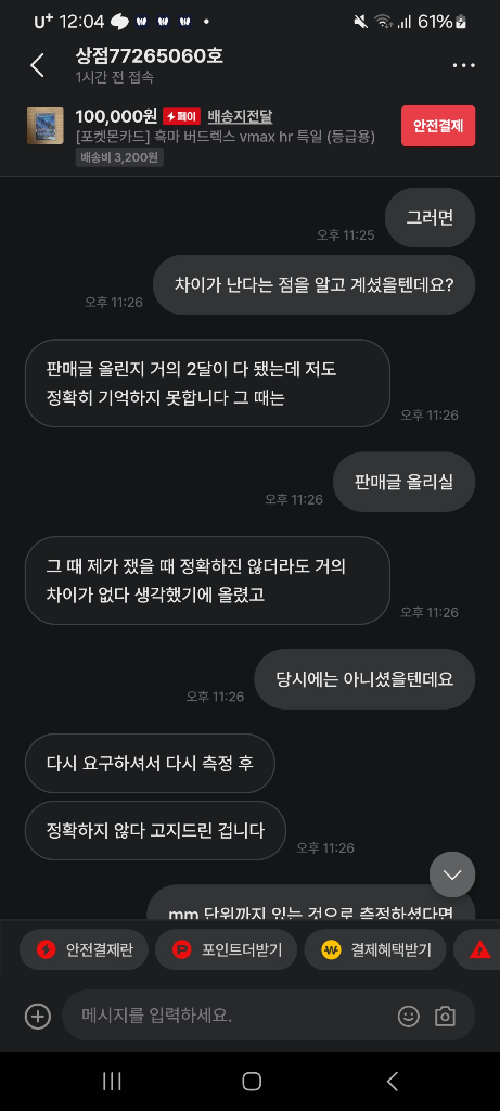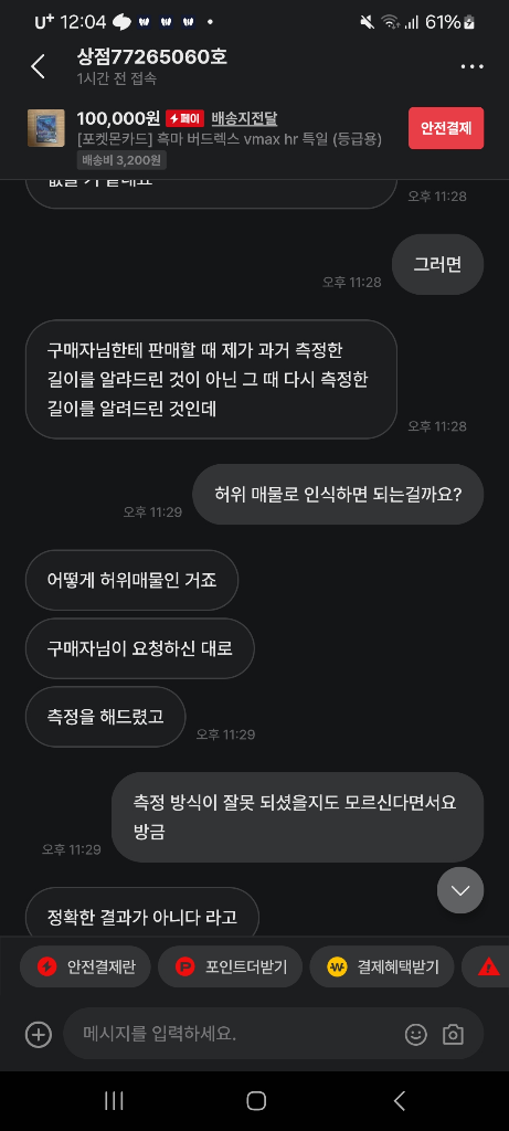 6.판매자분은 정확한 측정이 아닐 수도 있다고 채팅을 쳤기에 환불을 해줄 의미가 없다고 하셨습니다