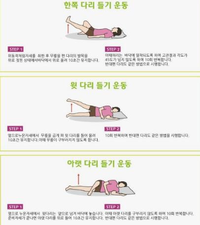 앉아있는상태에서 무릎을 구부리고 피는동작이나 오금부분에 수건을두고 꾹 누르는동작도 도움이될수있으니