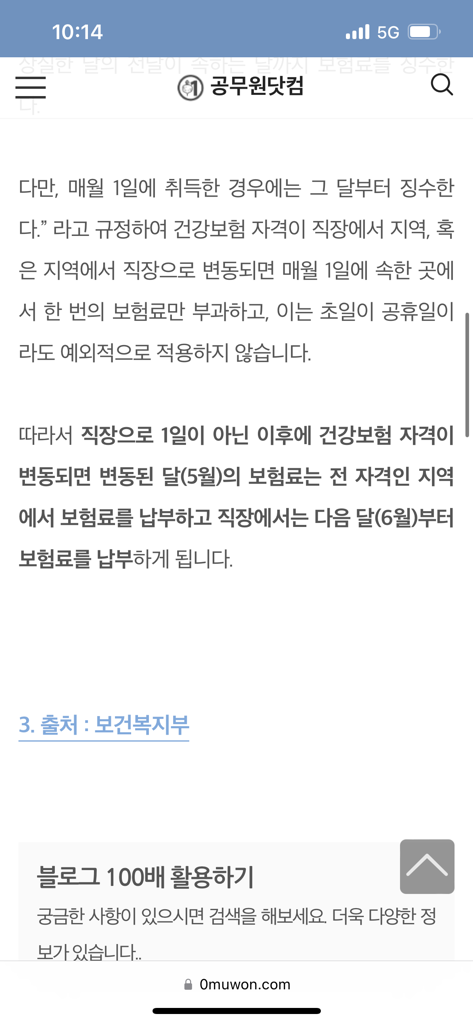 매달 1일 입사자가 아니면 그달에는 건강보험 직장가입자가 적용되지 않고 이전의 자격이 유지됩니다.