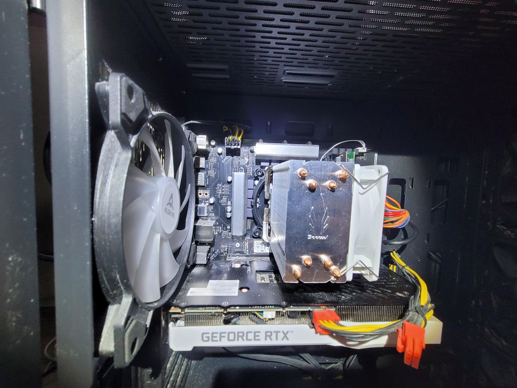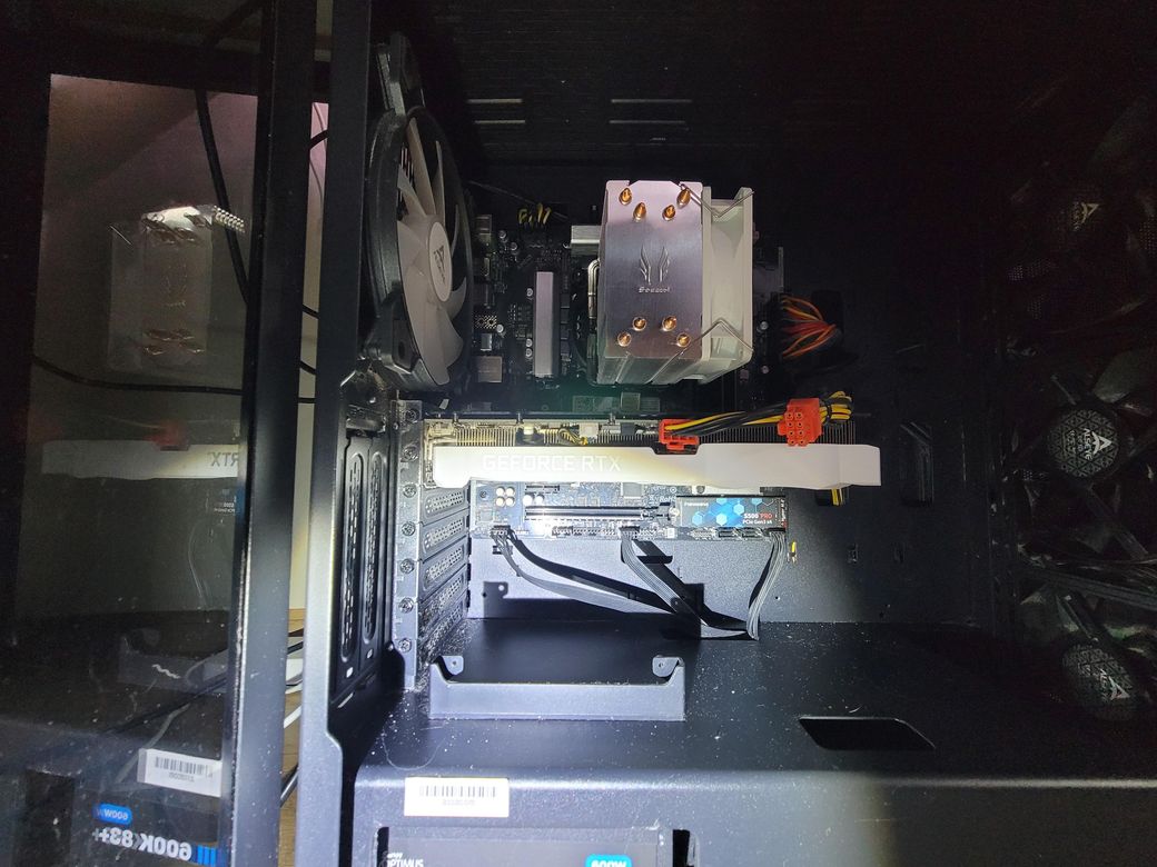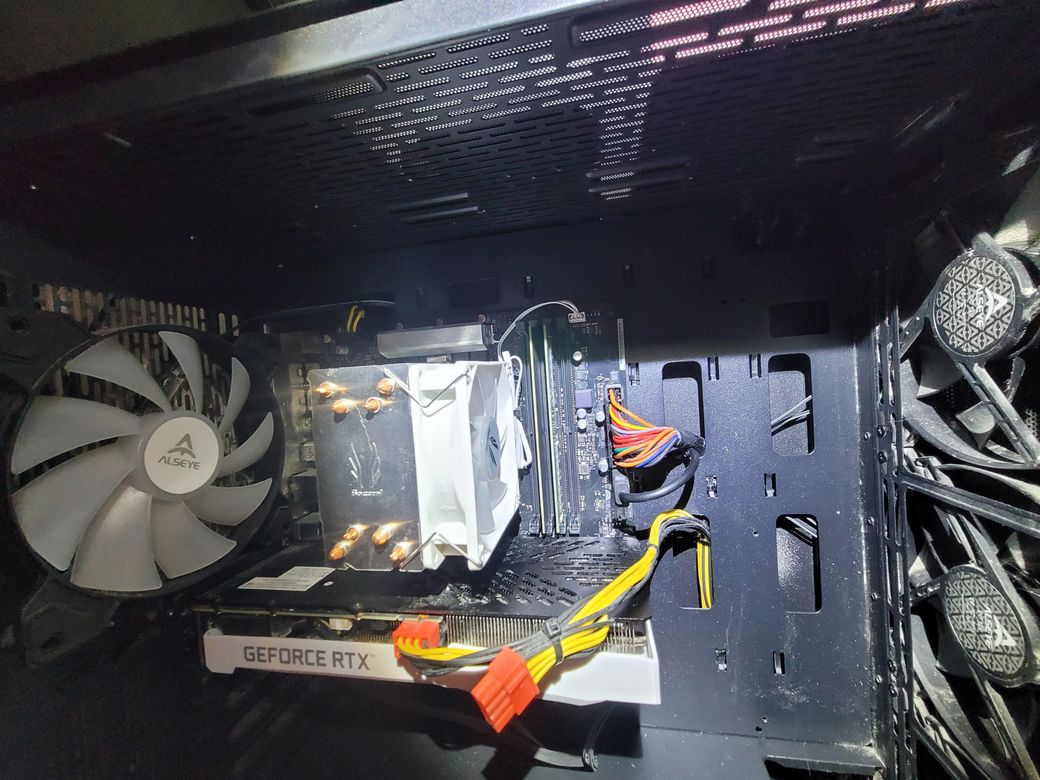 컴퓨터의 수은 전지는 GEFORCE RTX라는 그래픽카드에 가려져서 보이지 않는 것 같습니다. 그래픽카드를 빼고 확인해보시면 됩니다.