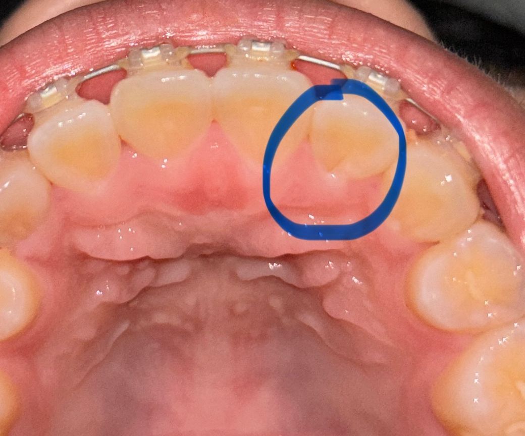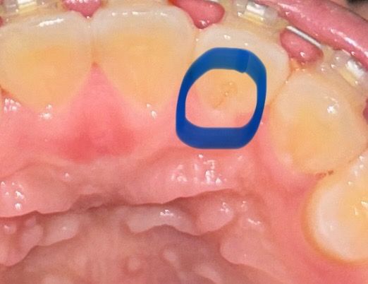 앞니 뒤쪽에 저런 선이 있는데 충치인가요 불과 2주전쯤 치과가서 충치이야기 할때는 앞니에 충치 잇다는 이야기는 못들엇는데.. 아프지듀 않습니다