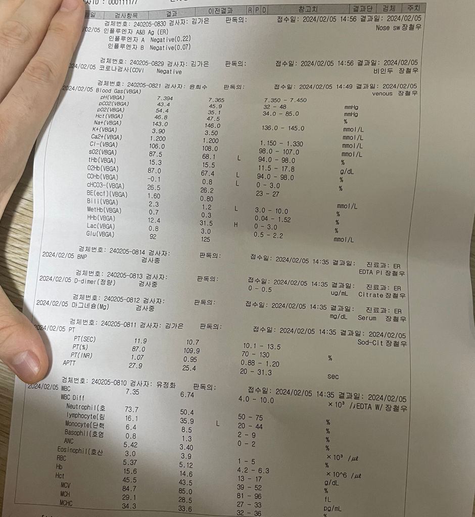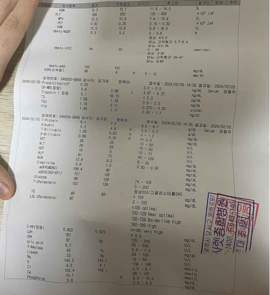 보니까 이전검사에 비해서 수치가 오르거나 내려간게 있는데