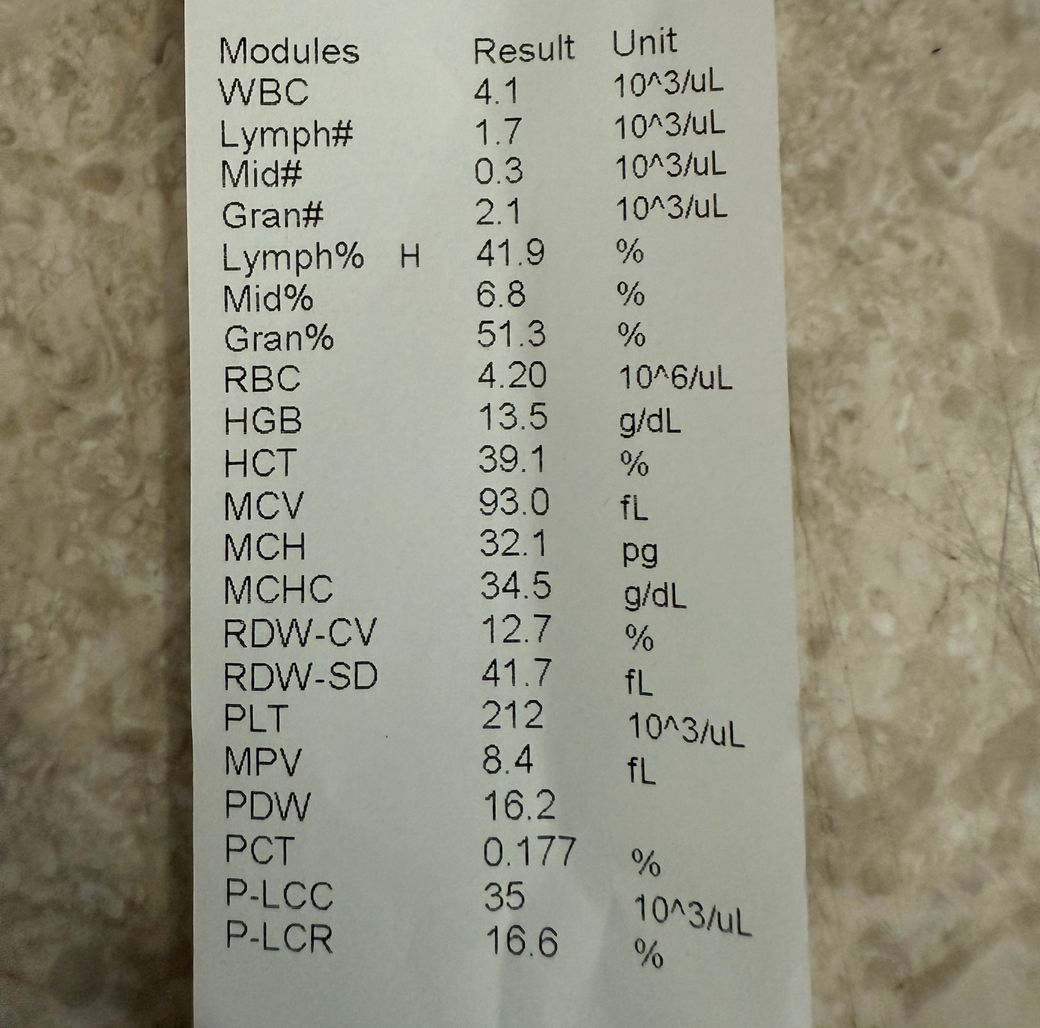 CRP나 ESR같은 염증을 반영해주는 지표가 있으면 좋은데 이런 지표는 위 검사 결과에 포함되어있지 않은 상태입니다.