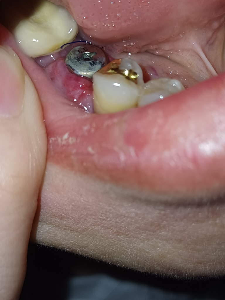 그리고 잇몸이 가끔씩 시큰시큰하게 통증이 올라와서 살펴보니 사진 같은 상태인데 혹시 염증이 생긴걸까요? 실밥 풀러 갈때만 해도 딱히 별다른 통증이 없었는데 실밥 풀고 난 다음날부터 잇몸이 시큰시큰하게 통증이 좀 있습니다. 염증이라면 무조건 이식재 제거하고 다시 해야하나요? 작은 염증이면 약으로 일단 경과를 본다던가 이런건 없는지...