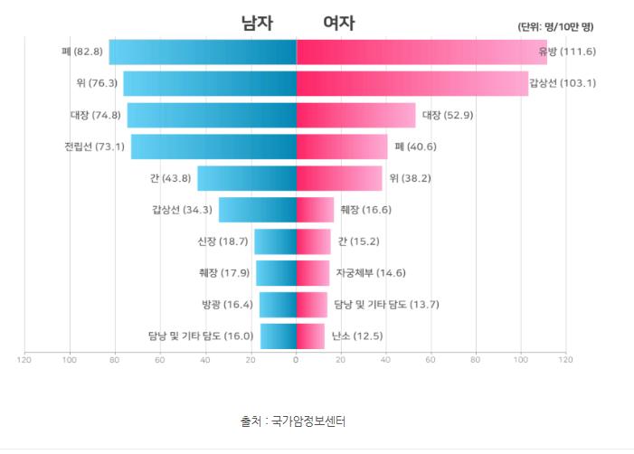 여자분이라면 흔한 암이 순서되로 정리되어 있습니다. 따라서 이 순서에 해당하는대로