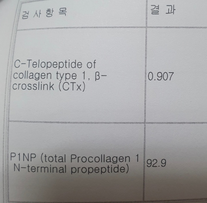 골형성표지자( P1NP) : 92.9 <-- 정상보다 높습니다.