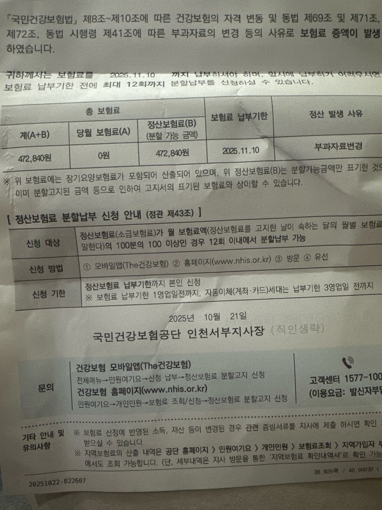 2025년 4월부터 건강보험 남편밑으로들어갔고