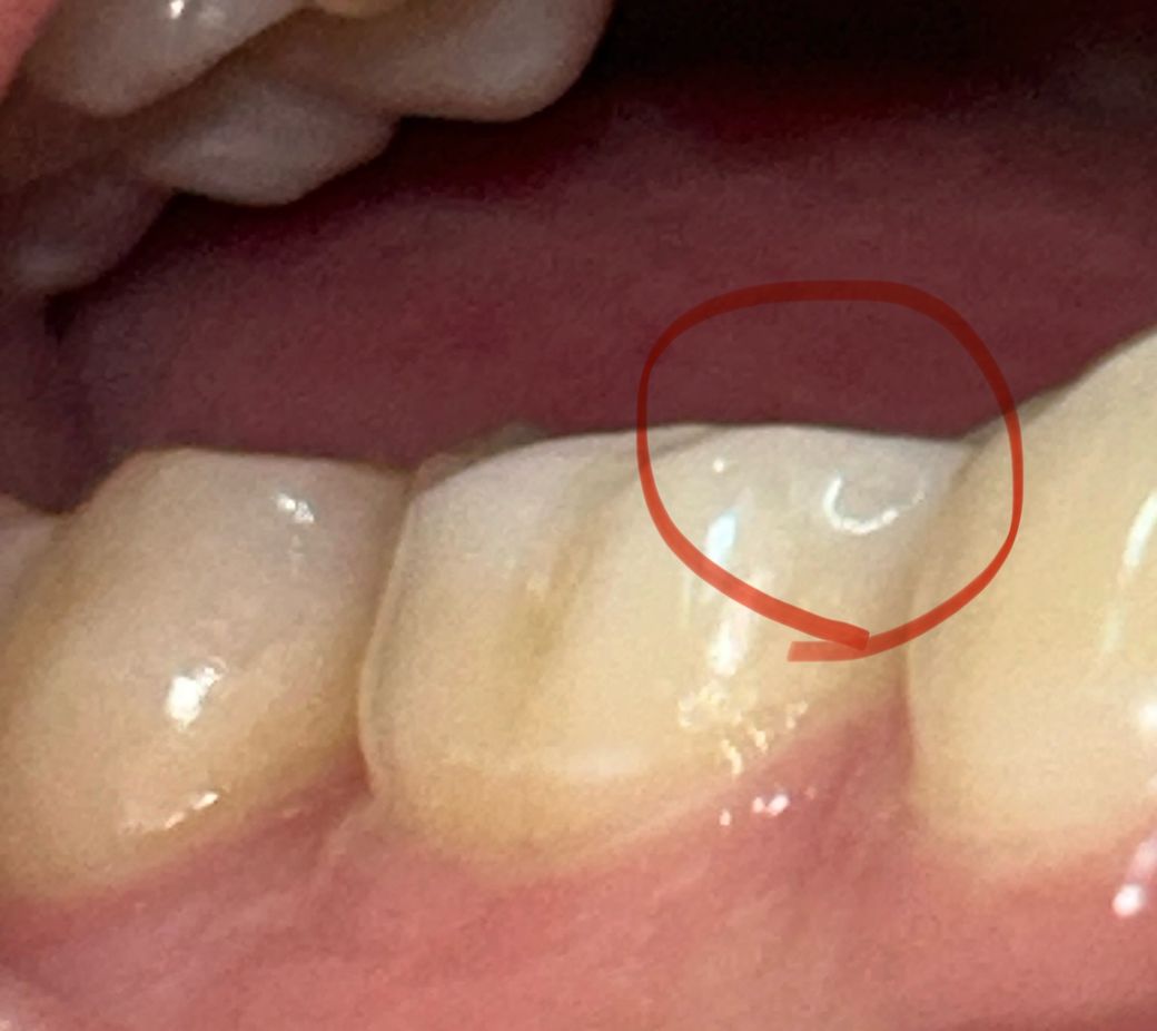 저정도면 레진이 일부 떨어졌다기보단 쓰면서 마모가 된 것 같은데 혀로 만졌을때 거칠지않을 정도로 다듬으면 좋을 것 같습니다