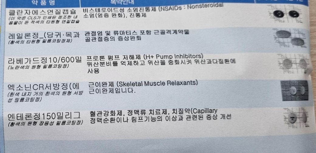 처방받은이유는 목디스크통증 및 다리저림으로 인해받았습니다. 네 통증 경감에 효과가 있는 약들입니다.