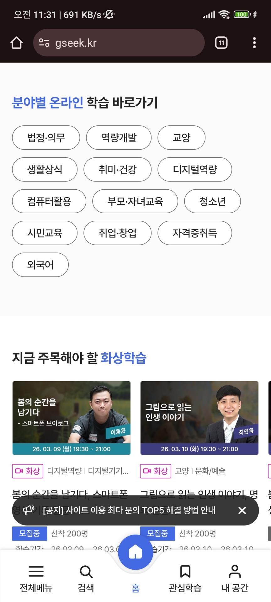 혹시 뭔가를 배우고 싶으시면, 경기도에서 지식을 공유하는 사이트 gseek에 가입해서 배워보세요.