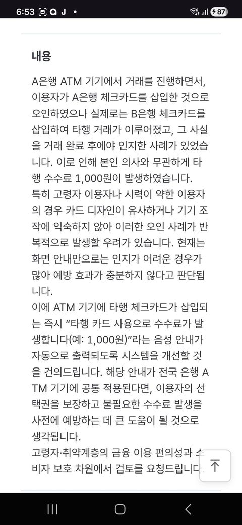 후자의 경우, 내부 검토를 통해서 받아들여질 가능성은 존재합니다. 다만, ATM 기기의 시스템을 손봐야 하는 부분이라서, 단기간에 개선이 되기에는 어려움이 있을 것으로 보이니 참고하시기 바랍니다.