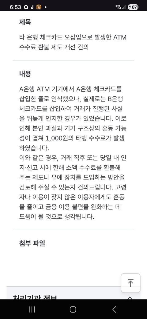 ATM 수수료 1,000원 환불 요청과 사전 안내 알림 개선 민원은 각각 반영될 수 있나요?