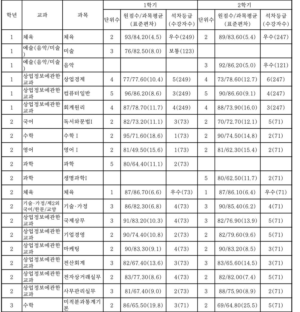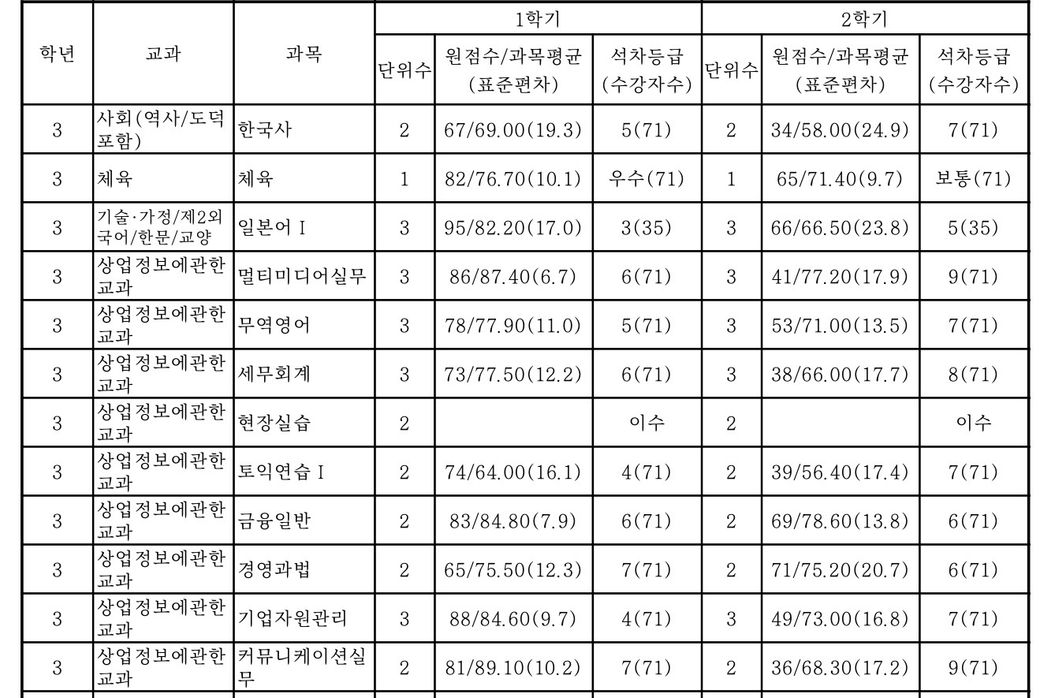 따라서 최종내신은 4.33등급이 되겠네요 석차등급이 숫자로 나오지 않는 경우는 제외했습니다