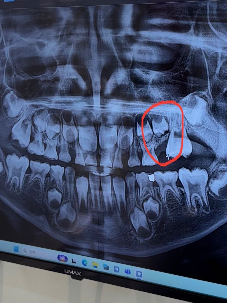 뒤에 나오는 어금니가 많이 자란거 같아서 오늘 다시 갓더니 송곳니( 아마도 영구치를 말씀하시는거 같아요)
