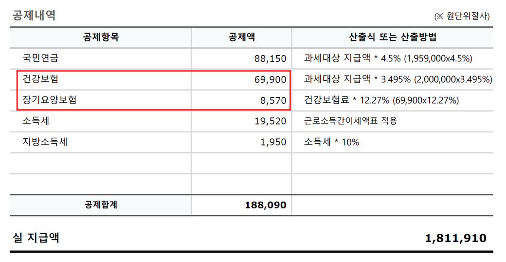 1. 건강보험 69,900 - 54,180 = 15,720