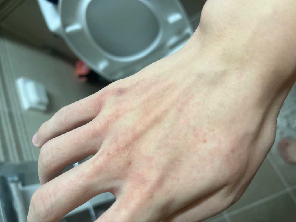 특정 물질에 대한 피부의 알레르기 반응이나 자극 반응으로 발생할 수 있습니다. 농구를 하면서 사용한 공, 손잡이, 보호 장비 등에 의해 유발될 수 있습니다.