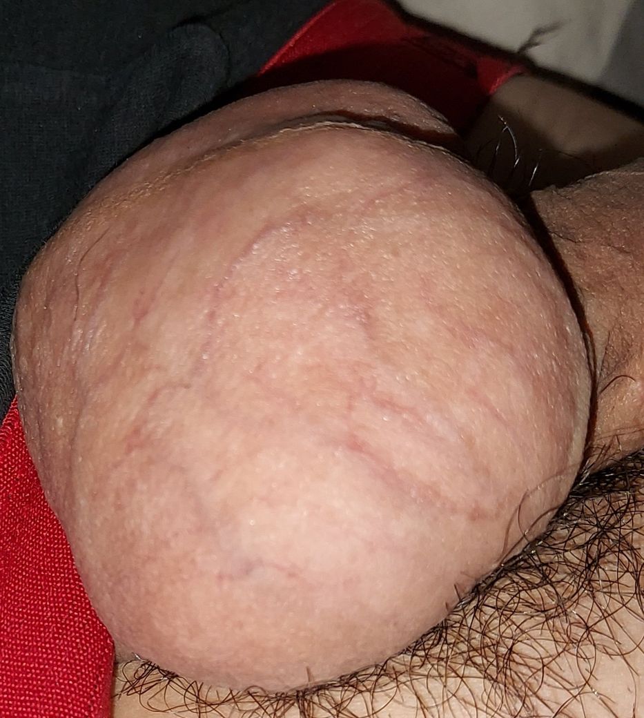 고환 중앙에 하얀점은 정관수술을 한 흔적입니다