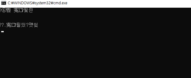 메모장으로 cmd에서 실행해보려고 하고있는데 자꾸 한글이 안나오고 저런 글자만 나와요