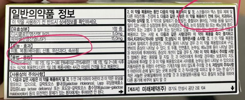 장염 및 복통으로 인한 약 구입 및 복용지도