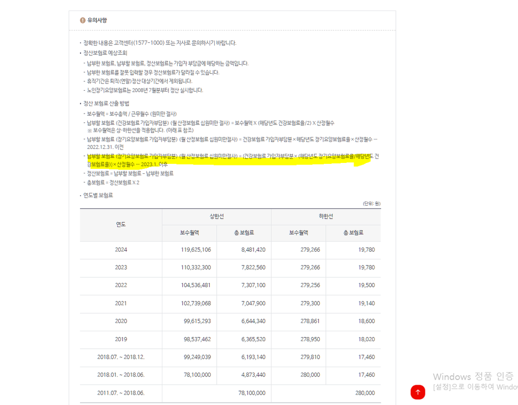 산출보험료 172,760원이고 2023년 확정보험료 건강보험2,073,120원 요양 265,440원 확인했는데