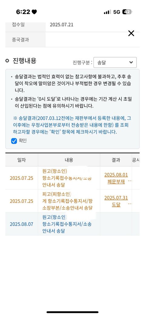 항소기록접수통지서가 송달 이후 한 달 동안 결과가 없을 수 있나요?