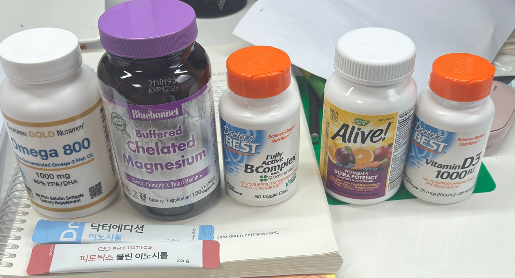 영양제 종류자체는 잘 복용하고 계십니다. 다만 비타민B가 중복되는데 비타민B는 수용성이라 조금 과량 섭취해도 일반적으로는 큰 문제 없습니다. 다만 굳이 추가해서 드실 필요는 없겠습니다.