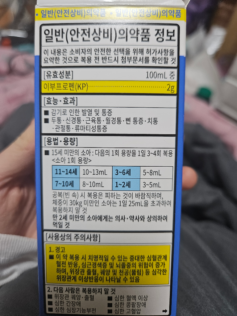 다만 부루펜시럽은 소아용으로 함량이 아주 적으므로 성인의 경우에는 1회에 20ml정도를 복용해야 합니다.