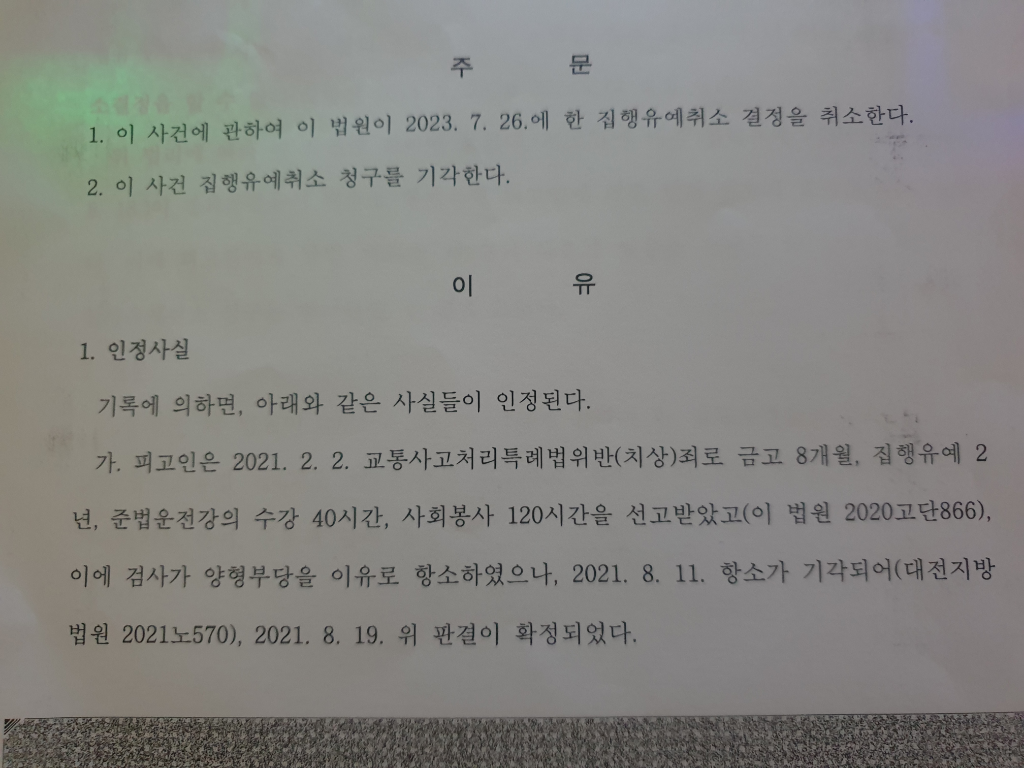 집행유예 취소 결정을 취소하는 것이므로 기존과 같이 사회봉사 명령등을 이행하시면 되고 이는 보호관찰소에 문의하시어 진행하시면 됩니다.