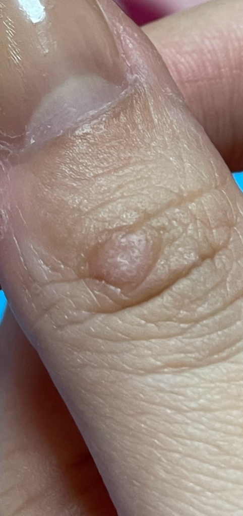현재 흉터라기 보다는 사마귀 바이러스로 인한 병변으로 의심이 되기에, 손을 대지 말고 빠른시일내에 피부과 진료를 받고 치료를 받길 권장드립니다.