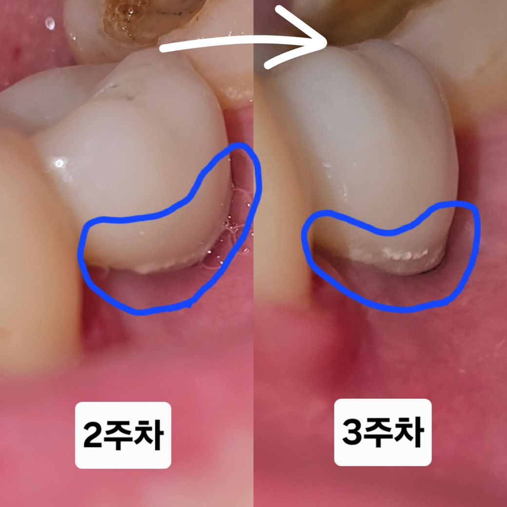 3. 전후 비교했을때도 잇몸이 눌려서 살짝 내려간 것으로 보이긴 합니다.