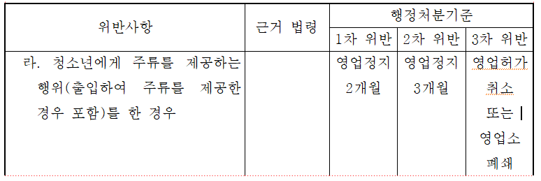 4. 청소년에게 주류(酒類)를 제공하는 행위