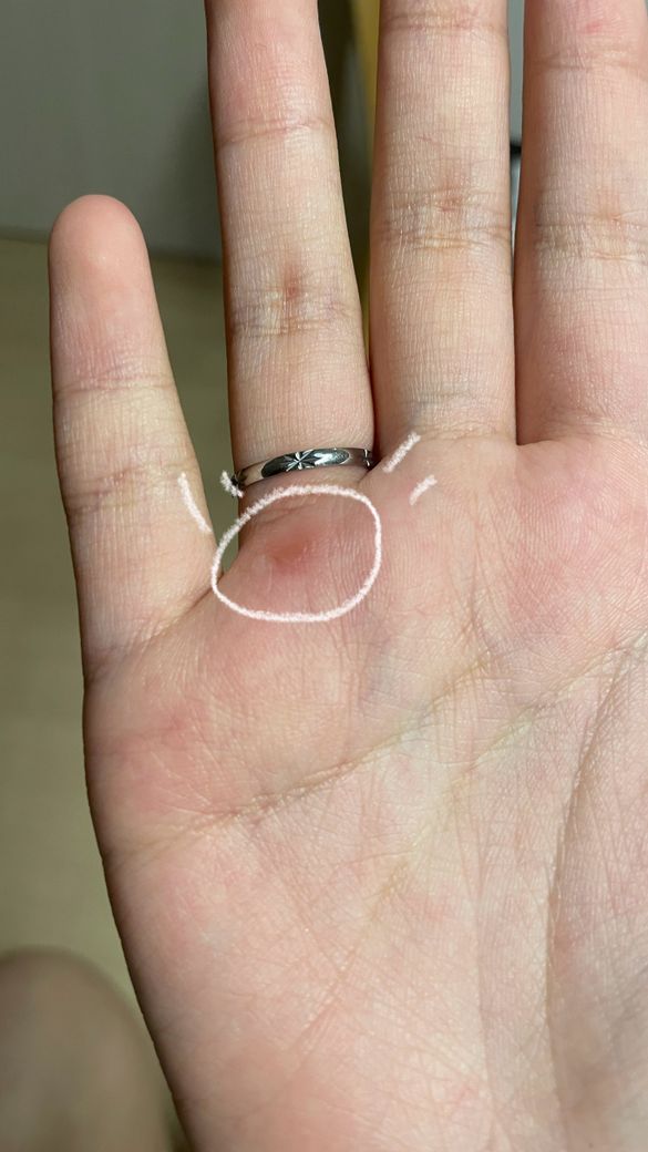 네번째 손가락 바로 밑에 굵은 살 같은게 낫더라고요