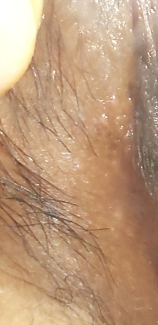 뭐가 만져져서봤더니 작고 하얀 돌기 같은게 나있습니다