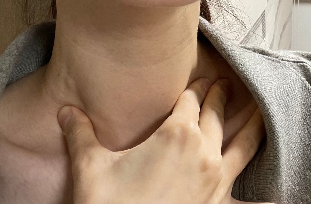 말씀하신 증상들로 구체적인 원인을 파악하기에 무리가 있지만 근골격계의 문제가 아니라면 목 안쪽의 문제를 의심해보아야 하겠습니다. 이비인후과에서 진료 및 정밀 검사를 받아보시길 권고드립니다.