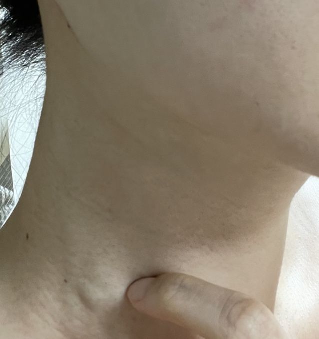 그리고 오늘 보니까 쇄골 위에를 살짝 누르면 사진과 같이 혈관이 중간에 끊기듯 동그랗게 튀어 오르는 부위가 있어요.