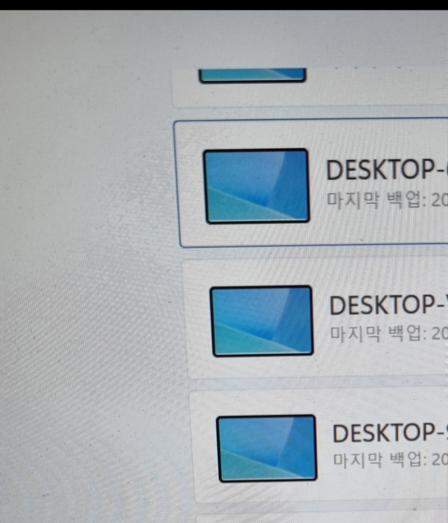 다른 PC의 백업 데이터가 나타날 수 있습니다.